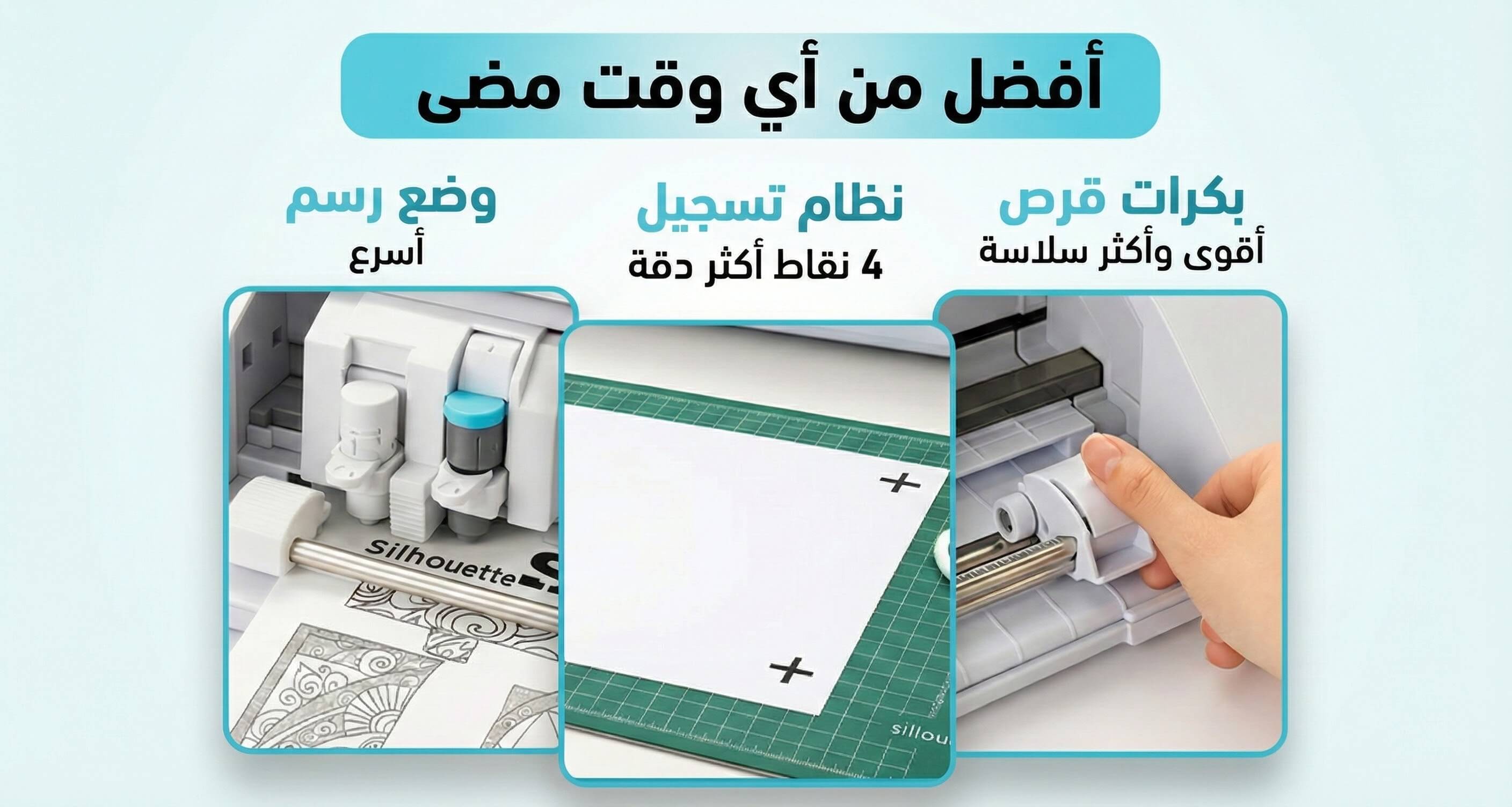 جهاز سيلويت كاميو 5 ألفا وصل للسعودية، وبدون مبالغة—هذا مو تحديث بسيط. هذا الجهاز أخيراً جاب لنا التصحيح اللي كنا نحتاجه من زمان. لو عندك مشروع تجاري أو حتى شغل منزلي جاد، ترى الـ Alpha فعلاً يغيّر اللعبة.