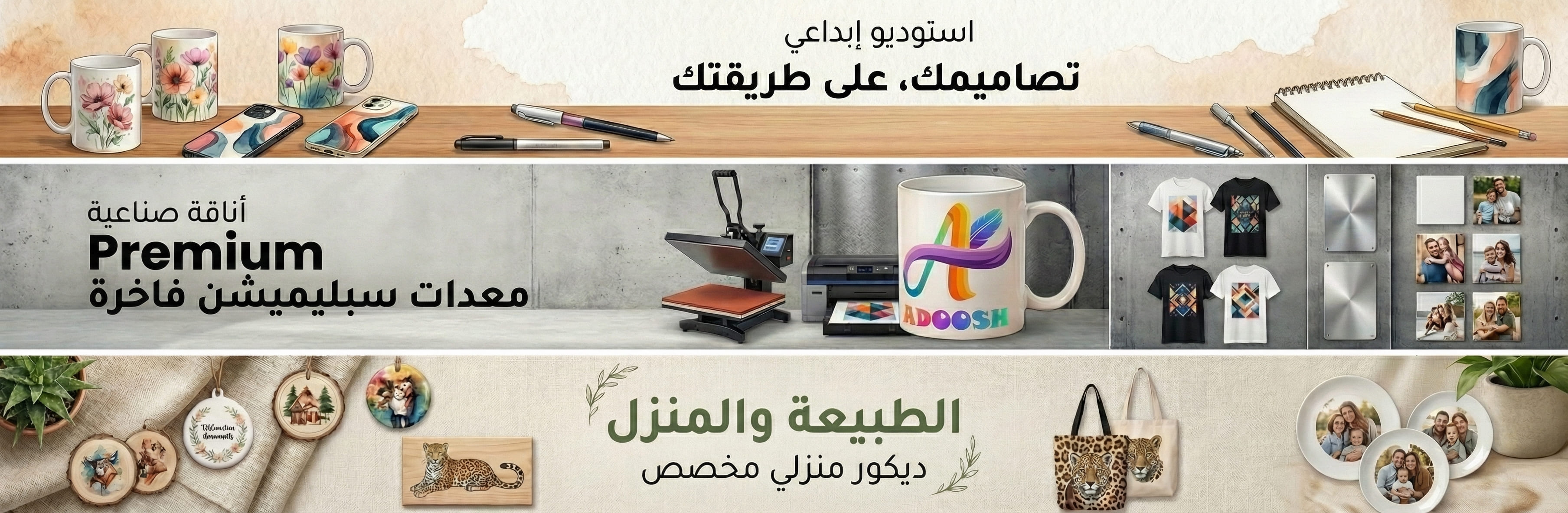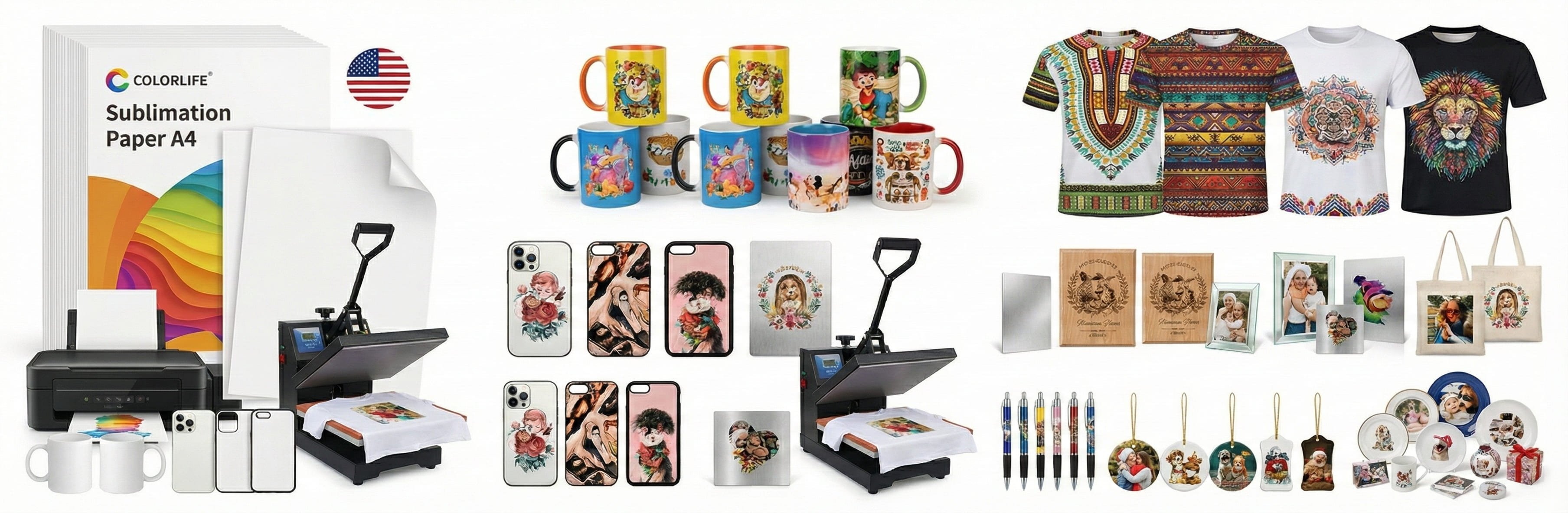 ✅ استخدامات واسعة: أكواب، كفرات جوال، صحون، زجاج، سيراميك، ألمنيوم، خشب، حجر، شنط سبلميشن، تيشيرتات بوليستر
